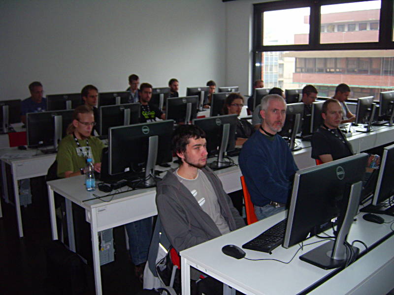 Only 5 persons came to my openSUSE jeopardy, but they all played and had fun in finding the matching questions for my answers about Linux and openSUSE. Jan must have had most fun - he won both rounds (and two bottles of wine). The IRC based "buzzer" worked quite well and will probably be used again at next LinuxTag. On monday, I was one of the few participants of the BoF about the openSUSE landing page, which we extended time-wise. This also means the admin@ BoF was more or less dropped, which wasn't really bad because there weren't admins around. Afterwards, Coolo volunteered me ;-) to operate a video camera. The terrible pictures of the audience on monday afternoon (project meeting etc.) and tuesday (mostly room Riker) are from me ;-) Thanks to everybody who contributed to the openSUSE Conference, and for the travel support! Slides: