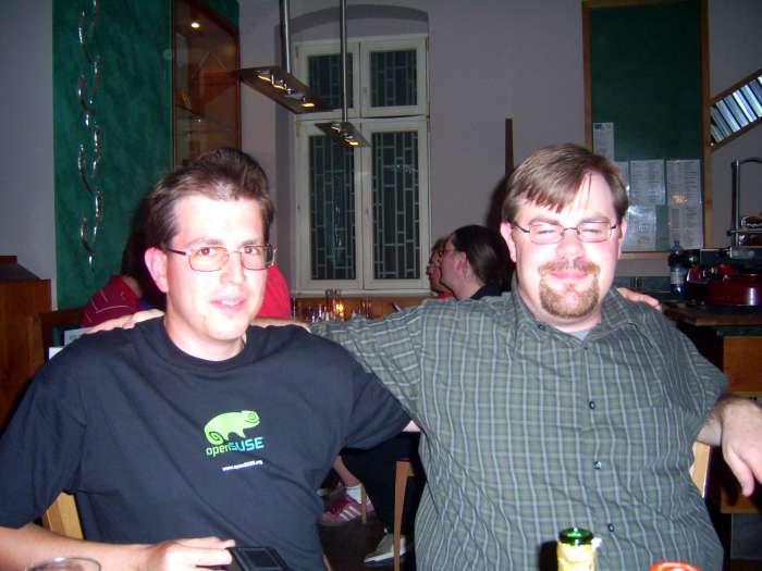 Zurück vom LinuxTagDer LinuxTag ist mal wieder vorbei. Wie gewohnt waren es schöne Tage in Berlin, an denen ich einiges lernte und auch etlichen Besuchern am openSUSE-Stand ihre Fragen beantworten konnte. Außerdem traf ich viele Leute, die ich vorher nur aus Mails kannte. Mindestens genauso schön waren die Abende - am Donnerstag auf der LinuxNacht (die offizielle LinuxTag Party), am Freitag mit dem openSUSE Team beim "openSUSE dinner". Vielen Dank an alle, die durch ihre gelungenen Vorträge, ihre interessanten Fragen und durchs Spendieren des Abendessens ;-) den LinuxTag zu einem gelungenen Event machten! Inzwischen habe ich auch meine Hausaufgaben gemacht und die GPG-Keys aller Teilnehmer der Keysigning-Party signiert. LinuxTag is over again. As usual, the time in Berlin was very good. I learned several things and was able to answer lots of questions at the openSUSE booth. Besides that, I met several people I only knew from mails before. The evenings were even better - thursday at the LinuxNacht (LinuxNight, the official LinuxTag party), friday at the openSUSE dinner with the openSUSE team. Thanks to everybody who made the LinuxTag an exciting event by giving good talks, asking interesting questions and by treating the dinner ;-) In the meantime, I did my homework and signed the GPG keys of all participiants of the keysigning party. Der LinuxTag in Bildern: / LinuxTag in pictures: Donnerstag, 29. Mai 2008