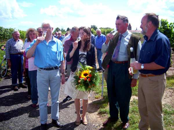 Wer unseren Schaufelraddampfer also live sehen will, hat noch Gelegenheit! Für alle anderen gibt es ab morgen 15:11 Uhr auf www.Landjugend-Insheim.de die Bilder vom Wagenbau und in ein paar Tagen auch die Bilder unserer Faschingstour. Mittwoch, 26. Dezember 2007Winterlicher WeinbergMan nehme ein paar kalte Wintertage mit Frost, gebe dazu eine kräftige Portion Nebel und rühre das Ganze gut um. Das Ergebnis kann sich sehen lassen: So sieht ein winterlicher Weinberg mit aus Nebel gefrorenen Mini-Eiszapfen aus. Durch Anklicken des Bilds kann man sich die Desktop-taugliche Version herunterladen. Freitag, 22. Juni 2007Rebsortenweg - und eine Vorschau auf ein ereignisreiches WochenendeAls Beitrag zum 1225-jährigen Dorfjubiläum und als Symbol für den Weinbau in der Gemarkung wurde am letzten Samstag der neu geschaffene Insheimer Rebsortenweg eingeweiht. Auf 15 Anschauungstafeln sind die hier angebauten Rebsorten erläutert - klassische wie Riesling, Silvaner, Portugieser und Spätburgunder und auch neuere wie Chardonnay und Regent. Auch eine Rarität gibt es: Hölder, eine Kreuzung aus Riesling und Ruländer, die in ganz Deutschland nur auf 11 ha angebaut wird. Bei der Eröffnung des Rebsortenwegs waren rund 60 InsheimerInnen und (wie bei diesen Anlässen üblich) ein paar Politiker anwesend. Wichtigster Gast des Tages war die Pfälzische Weinprinzessin Julia Erlenwein, die den Rebsortenweg offiziell einweihte. Dieses Wochenende (23. und 24. 6.) wird weitergefeiert. Entlang des Rebsortenwegs finden die "Tage der offenen Felder und Weinberge" statt. Die Bauern und Winzer zeigen 40, teils seltene, Ackerkulturen, eine Tierschau mit kleinen und großen landwirtschaftlichen Nutztieren (vom Huhn bis zur Kuh - aber keine lila Kühe ;-) und einige weinbauliche Versuche. Außerdem gibt es eine Weinprobe und natürlich Essen und Getränke. Am Sonntag gibt es außerdem Oldtimer-Schlepper und das Scheren von Schafen zu sehen. Falls jemand vorbeikommen will: Insheim erreicht man am Besten über die A65, Abfahrt Insheim. Dann in den Ort fahren, an der Kreuzung halbrechts in Richtung Landau abbiegen und einfach den Schildern folgen. Ziel sind die Felder und Weinberge zwischen Landauer Straße und Hauptstraße.Die "Tage der offenen Felder und Weinberge" sind nicht die einzige Veranstaltung an diesem Wochenende - Ach ja: die Schilder des Rebsortenwegs wurden mit Scribus erstellt, auf einem sind außerdem ein paar mit OpenOffice erstellte Diagramme enthalten. Auch der Flyer wurde mit Scribus erstellt. Woher ich das so genau weiß? Ganz einfach: ich habe das alles gestaltet ;-)